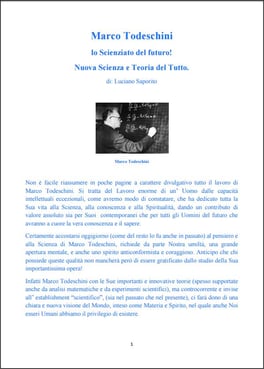 Ritengo sia una ‟fortuna„ possedere, dopo lunghi anni di ricerche, tutta una serie di informazioni documentate, per poter ricostruire il “percorso terreno,, dello scienziato italiano, purtroppo misconosciuto, Prof. Dott. Ing. Marco Todeschini, autore della «Teoria delle Apparenze – Spazio-dinamica - PsicoBioFisica».