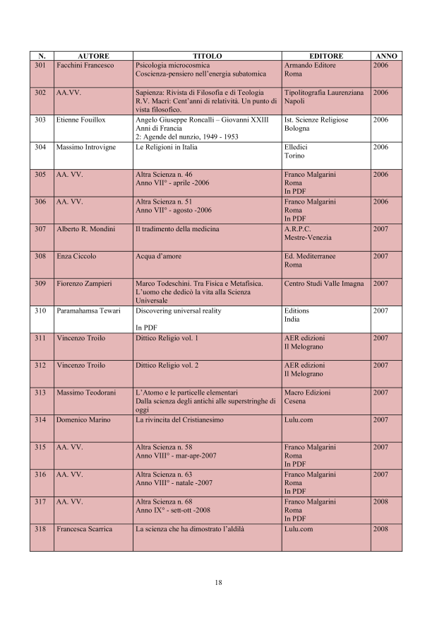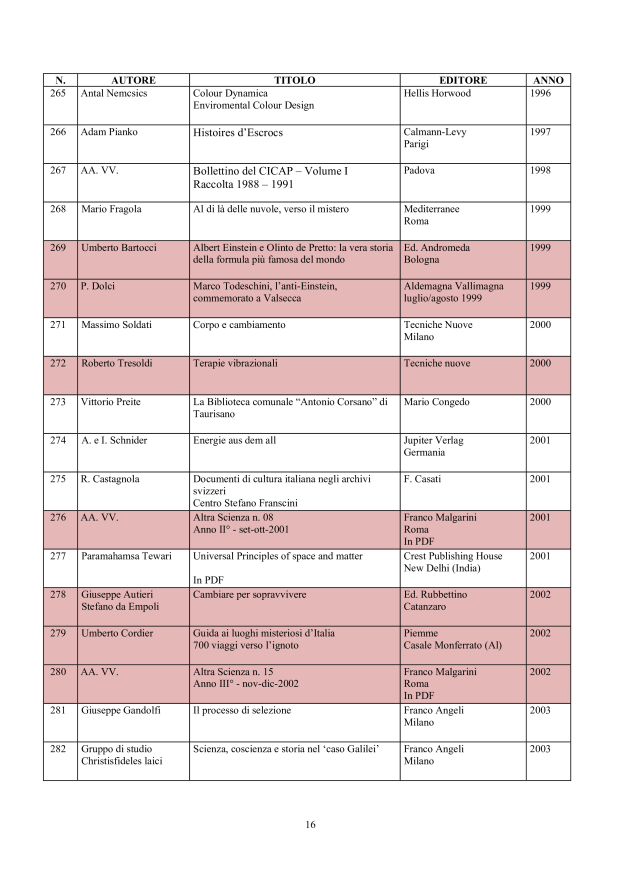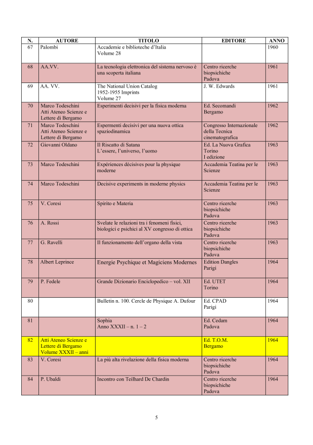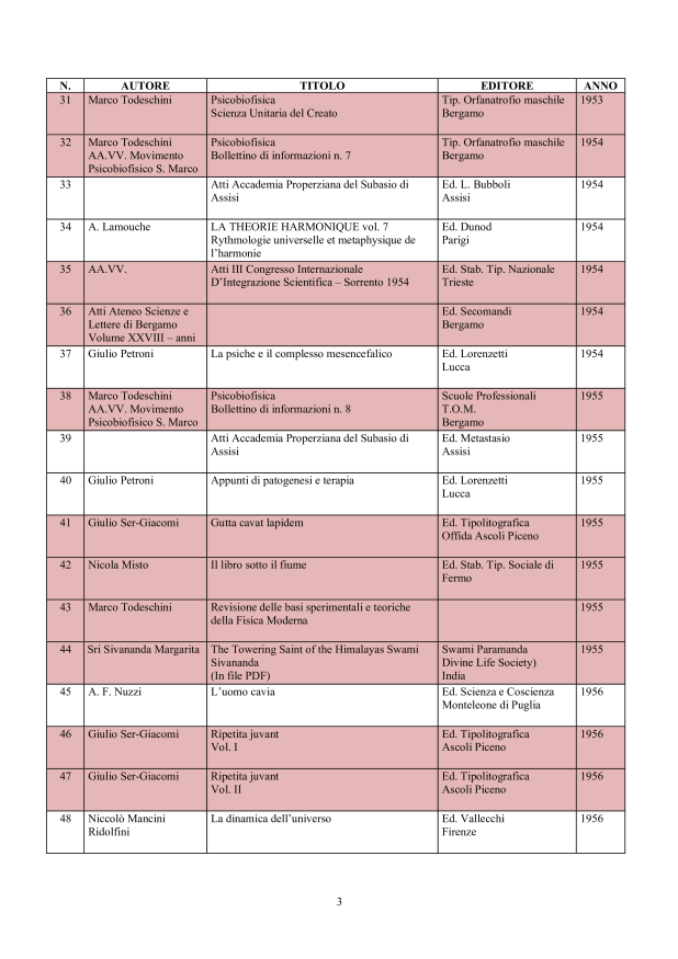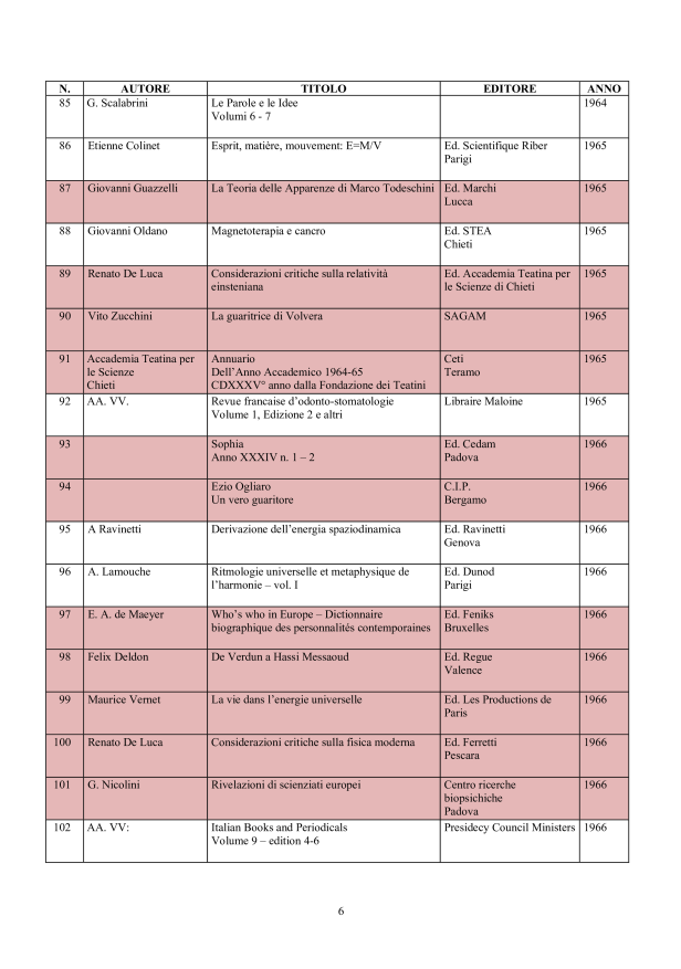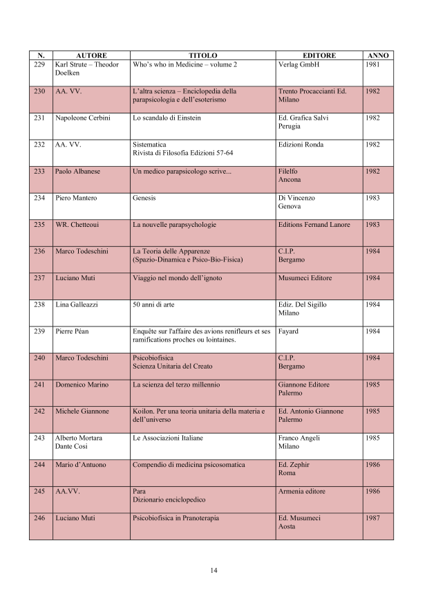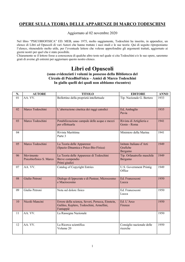 in ordine cronologico, affiché il lettore possa evere una chiara visione degli sviluppi che nel tempo la conoscenza della materia psicobiofisica ha avuto.