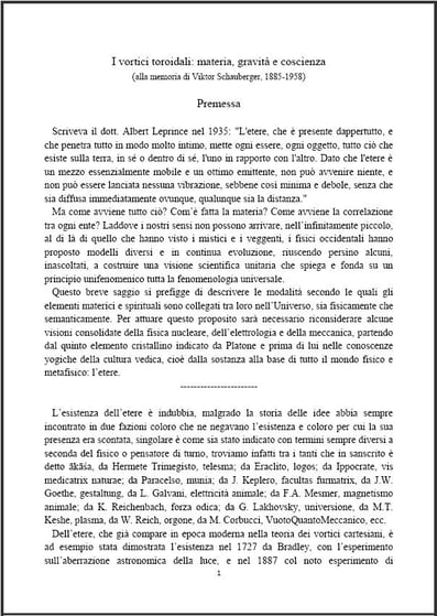 Questo breve saggio si prefigge di descrivere le modalità secondo le quali gli elementi materici e spirituali sono collegati tra loro nell‟Universo, sia fisicamente che semanticamente. Per attuare questo proposito sarà necessario riconsiderare alcune visioni consolidate della fisica nucleare, dell‟elettrologia e della meccanica, partendo dal quinto elemento cristallino indicato da Platone e prima di lui nelle conoscenze yogiche della cultura vedica, cioè dalla sostanza alla base di tutto il mondo fisico e metafisico: l‟etere.