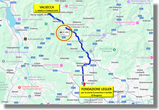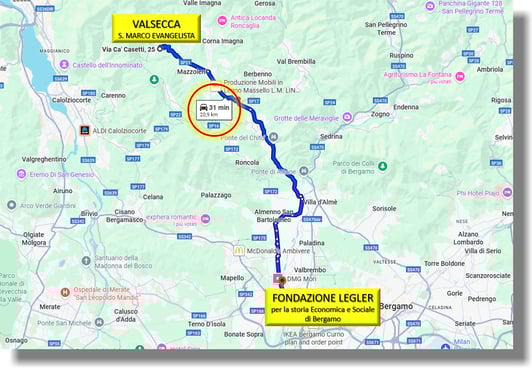 (Tempo di percorrenza in auto dalla Fondazione Legler alla Chiesa di Valsecca: 31 minuti circa)