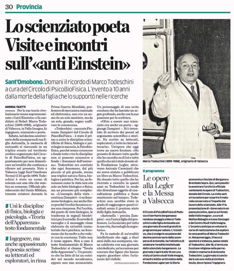 ARTICOLO SU "L'ECO DI BERGAMO"
